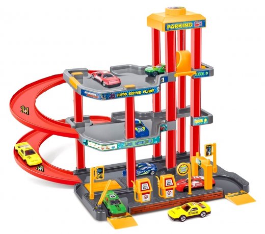 Парковка с 2 машинками – это интересная двухуровневая парковка, которая выглядит совсем как настоящая. В комплект входит сама парковка и две машинки – мальчик сможет разделить игру с другом, что сделает ее еще интереснее. Также в наборе присутствуют наклейки дорожных знаков и разметки, чтобы ребенок мог обустроить парковку. Здание парковки вмещает в себя все, что может потребоваться автолюбителям: здесь есть лифт, который поднимет машину на второй уровень, автомойка и станция техобслуживания. Для машин предусмотрены удобные пандусы и съезды, а чтобы водители соблюдали правила дорожного движения, на парковке установлены дорожные знаки и шлагбаумы.