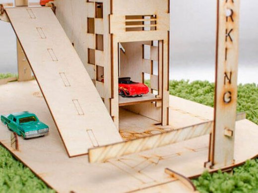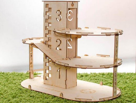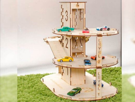 Трехуровневая автопарковка для машин станет любимой игрушкой вашего мальчика. Парковка оснащена действующим лифтом, шлагбаумом, а на самом верху паркинга - вертолетная площадка. Автопарковка высотой 43 см, изготовлена из экологически чистого и безопасного материала - березовой фанеры, толщиной 3 мм.