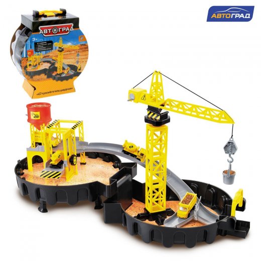 Стоит раскрыть компактный чемоданчик, и перед вами возникнет настоящая стройплощадка. Модуль сочетает множество разнообразных реалистичных деталей с подвижными элементами. На подъёмном кране чадо переместит грузы, на самосвале подвезёт необходимые материалы по двухуровневой трассе, а с бетономешалкой строительной смеси хватит на воплощение любых задумок!