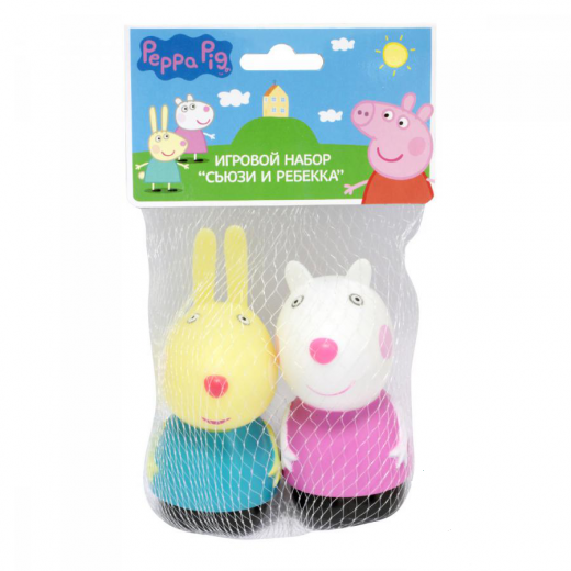 Игровой набор Сьюзи и Ребекка – это замечательный подарок для ребенка. Сьюзи и Ребекка героини любимого детьми мультика, игрушки выполнены в очень ярких и красочных тонах, поэтому без труда привлекут внимание ребенка. Сьюзи и Ребекка составят ребенку компанию в веселых играх. Фигурки изготовлены из качественных материалов и окрашены безвредными красителями. Небольшие по высоте зверюшки (10 сантиметров) полностью повторяют свои экранные образы. Эти игрушки можно брать с собой в ванную и плескаться в теплой водичке вместе с милыми персонажами мультфильма про Peppa Pig.