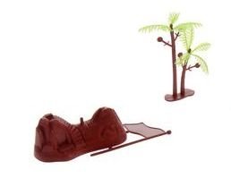 Состав набора: трактор с прицепом, животные, разобранная клетка, дерево, камень с флагом.