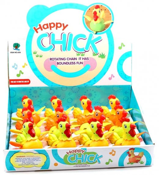 Курочка заводная пластмассовая – привлечёт к себе внимание малыша своим весёлым ярким видом. Необычная весёлая курочка станет отличным развлечением для малыша и взрослых. Небольшой механизм находится с боку игрушки, а вместо лапок у него колёсики, на которых передвигается забавная курочка. Прокрутив механизм игрушки, курочка быстро покатится вперёд, махая при этом крылышками и покачивая головой. Необычная яркая игрушка подарит много радости, восторга и улыбок малышу.
