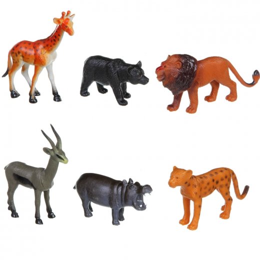 В состав набора входят 6 фигурок медведь, гепард, антилопа, бегемот, лев, жираф.