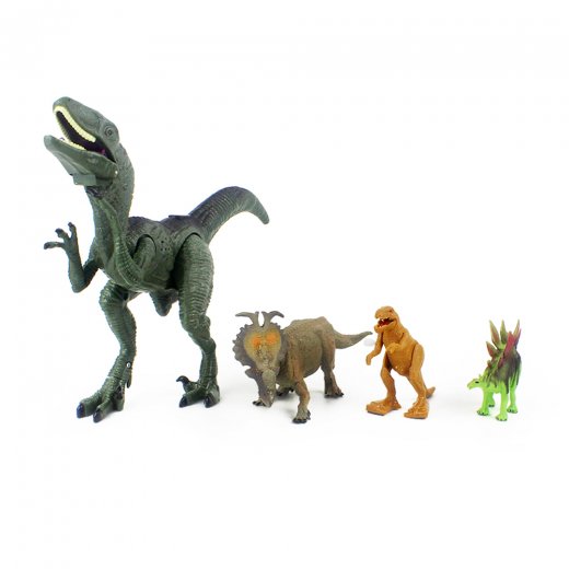 Перед вами набор динозавров Mioshi Active "Хищник на охоте: Велоцираптор". Это сразу 4 разных динозавра и декорации в одном комплекте.
