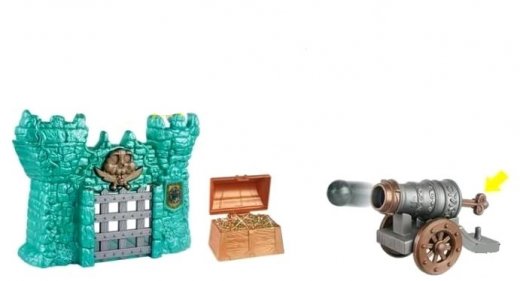 Состав набора: 4 фигурки пиратов, сундук с сокровищами, крепость, флаг, оружие, пушка, снаряды, подзорные трубы.
