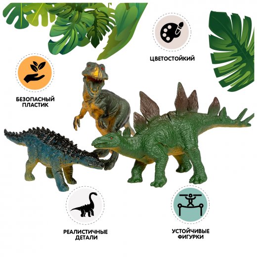 Коллекция динозавров юрского периода ДИНОЗАВРЫ 3 понравится всем любителям дино. Фигурки выглядят реалистично, чтобы ребёнок играл и познавал доисторический мир с удовольствием.