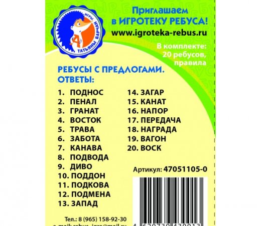 Купить игровое пособие "Ребусы с предлогами" в Новосибирске Вы можете в магазине развивающих и настольных игр "Игры Почемучек".