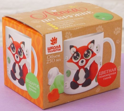 Набор для декорирования кружки полимерной глиной "Лиса" от компании "Школа талантов" обязательно привлечет внимание детей и станет великолепным атрибутом для творческой самореализации. Крохе предстоит создать объёмное изображение из полимерной глины. Как сделать это быстро и легко, подскажет подробный мастер-класс внутри упаковки. Используя предметы данного набора, дети смогут изготовить оригинальный подарок своими руками, украсив кружку изображением забавного лисенка. Готовое декорированное изделие необходимо будет поместить в предварительно нагретый до 110 градусов духовой шкаф, подержать полчаса и дождаться полного остывания.