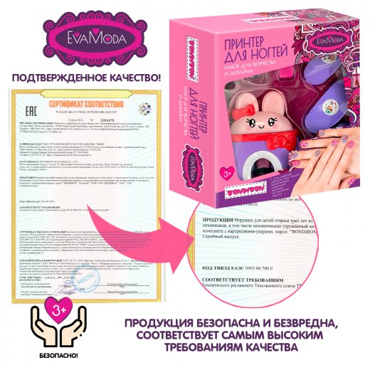 Порадуйте свою принцессу современным детским косметическим набором «принтер для ногтей» из серии «Eva Moda» от Bondibon!