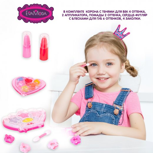 Замечательный набор детской косметики в виде короны и сердца хранит секреты красивого макияжа. Используйте магию цвета и познакомьте маленькую модницу с созданиями волшебных образов!