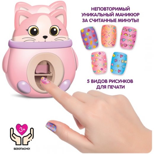 Набор для дизайна ногтей «КОШАЧЬИ ЛАПКИ» Eva Moda Bondibon – идеальный и оригинальный подарок для девочки. Стемпинг – это техника декорирования ногтей, при которой рисунок отпечатывается со специальной пластины на ноготки при помощи штампа. С таким устройством создать аккуратный маникюр быстро и просто – наносите цветной лак, помещаете пальчик в специальное отверстие, нажимаете на штамп, покрываете все прозрачным лаком, сушите и наслаждаетесь результатом. Это набор XXXL, в нем есть все, что нужно: принтер, 5 разноцветных лаков, 1 прозрачный лак, 5 картриджей с узорами, 62 наклейки для ногтей, разделитель, спонж, пилочка и инструкция. Водорастворимая формула позволяет легко удалить лак водой или снять пленкой. Продукция полностью сертифицирована и прошла все этапы контроля качества.