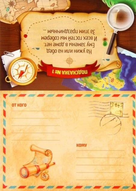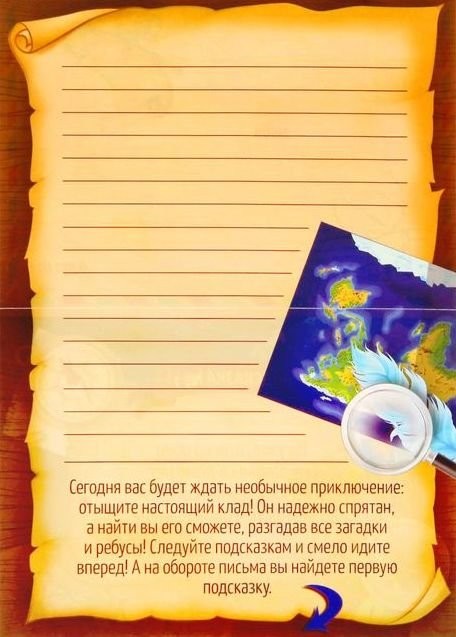 Состав: письмо, 12 листочков с подсказками, правила для родителей.