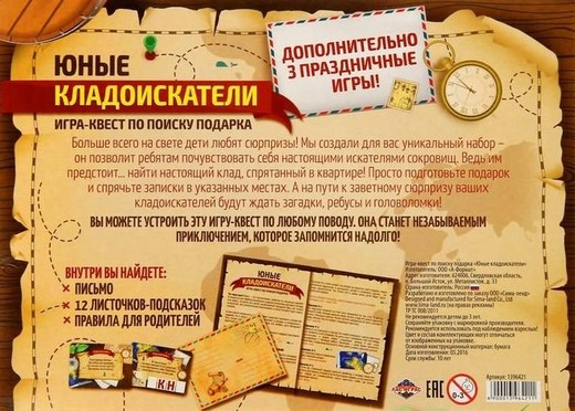 Купить Игру квест по поиску подарка Юные кладоискатели в Новосибирске Вы можете в магазине развивающих и настольных игр "Игры Почемучек"