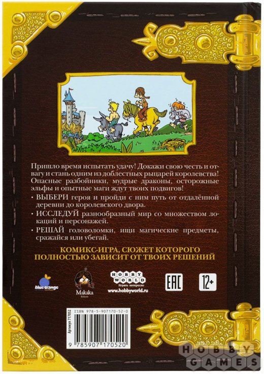 Всё это уместилось на 176 красочных страницах, которые обязательно подарят вам приятные впечатления и позволят интересно провести время как дома, так и, например, в долгой дороге. Также эту книгу можно читать с друзьями, совместно разыскивая ключи к дальнейшему развитию сюжета. Это остросюжетное приключение не оставит вас равнодушными, ведь нужно успеть стать рыцарем за пять дней и при этом умудриться остаться в живых, что будет непросто – герой может погибнуть в любой момент.