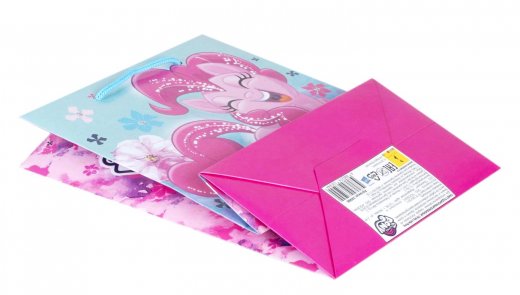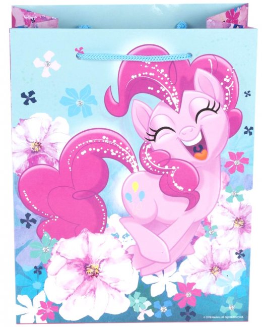 Пакет подарочный My little Pony – послужит как красивая упаковка под непосредственный подарок. Маленькая поклонница мультсериала будет просто в восторге! Подарочный пакет выглядит просто невероятно, он насыщенного розового цвета, боковая часть украшена цветочным принтом, очаровательные персонажи тоже окружены цветами, а вокруг них летают бабочки. Для удобства пакет оснащен специальными ручками.