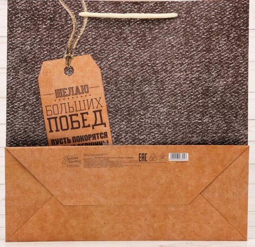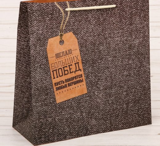 Подарочный пакет Больших побед – сможет стать отличным дополнением к презенту. Подарки не обязательно делать только по важным поводам. Дарите их спонтанно, без причины, просто для души, ведь главное в этом процессе - удовольствие! Прочная ламинированная бумага с ручками и уникальный дизайн делают его идеальным. Положите в него конфеты или игрушки, и ваш подарок не затеряется среди других.