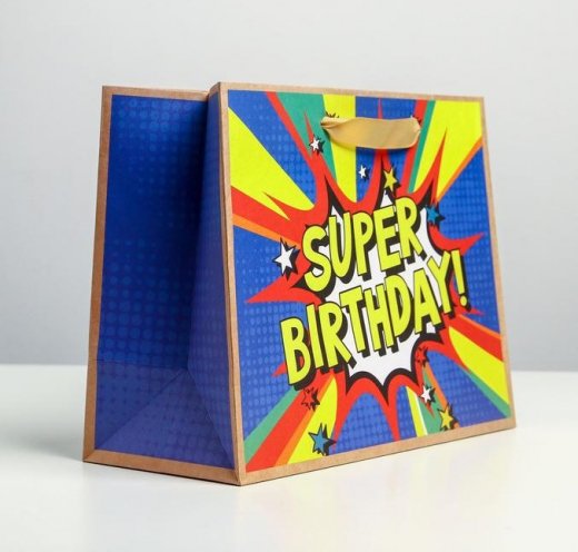 Купить Пакет крафтовый горизонтальный Super birthday 23 × 18 × 10 см в Новосибирске Вы можете в магазине развивающих и настольных игр "Игры Почемучек"