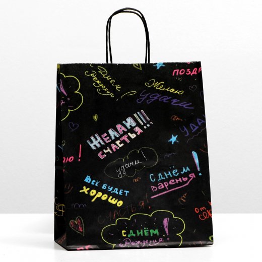 Купить Пакет крафт Пожелания 22*12*27 см в Новосибирске Вы можете в магазине развивающих и настольных игр "Игры Почемучек".