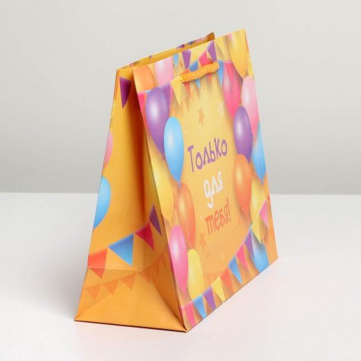 Купить Пакет подарочный Только для тебя желтый с шариками 23 х 18 х 8 см в Новосибирске Вы можете в магазине развивающих и настольных игр "Игры Почемучек".