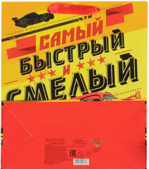 Пакет Поздравляю с днем рождения Тачки – несомненно понравится всем мальчишкам и юным озорникам. Его можно использовать как небольшой презент или как красивую упаковку под непосредственный подарок.