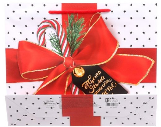 Подарочный пакет имеет оригинальный дизайн и новогоднее настроение, он обязательно понравится получателю! Изделие выполнено из плотной бумаги, благодаря чему обеспечит надёжную защиту содержимого. Подарки не обязательно делать только по важным поводам. Дарите их спонтанно, без причины, просто для души, ведь главное в этом процессе — удовольствие. Положите в него конфеты или игрушки, и ваш подарок не затеряется среди других.