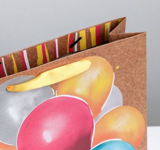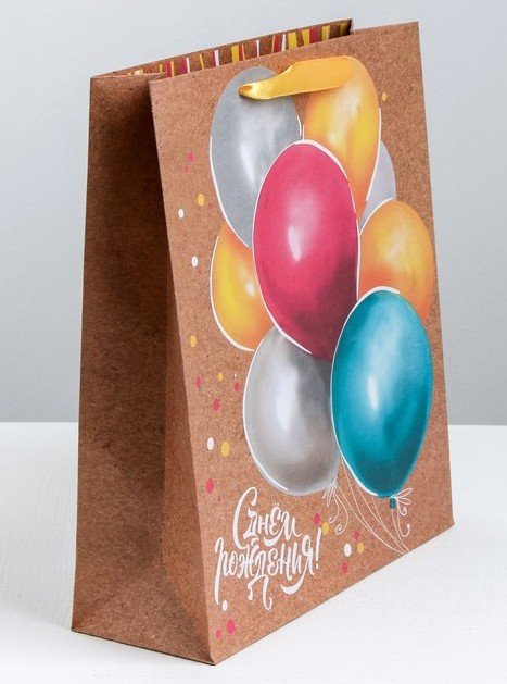 Купить Пакет подарочный крафтовый С днем рождения Шары 26х30 см в Новосибирске Вы можете в магазине развивающих и настольных игр "Игры Почемучек"