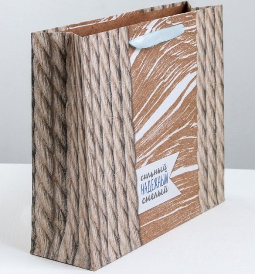 Пакет крафтовый Сильному надежному смелому, изготовленный из плотной бумаги, станет незаменимым дополнением к выбранному подарку. Дно изделия укреплено картоном, который позволяет сохранить форму пакета и исключает возможность деформации дна под тяжестью подарка. Для удобной переноски имеются две ручки в виде атласных лент.