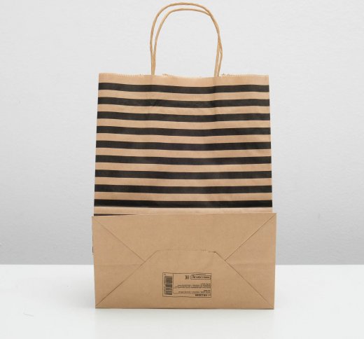 Купить Пакет подарочный крафт Полосы 24 х14 х30 см в Новосибирске Вы можете в магазине развивающих и настольных игр "Игры Почемучек".