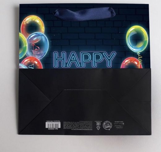 Купить Пакет подарочный Happy Birthday черный 22 × 22 × 11 см в Новосибирске Вы можете в магазине развивающих и настольных игр "Игры Почемучек".