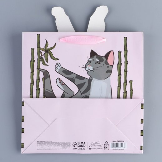 Купить Пакет подарочный Кот йога 22 × 22 × 10 см в Новосибирске Вы можете в магазине развивающих и настольных игр "Игры Почемучек".