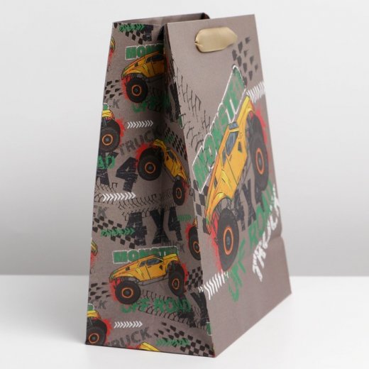 Купить Пакет подарочный Monster truck 23 × 27 × 11.5 см в Новосибирске Вы можете в магазине развивающих и настольных игр "Игры Почемучек".
