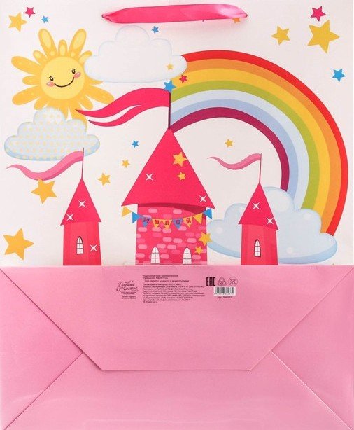 Пакет Маленькая принцесса 30*41*11,5 – можно использовать как небольшой презент или как красивую упаковку под непосредственный подарок. Любой подарок начинается с упаковки. Что может быть трогательнее и волшебнее, чем ритуал разворачивания полученного презента. И именно оригинальная, со вкусом выбранная упаковка выделит ваш подарок из массы других. Она продемонстрирует самые тёплые чувства к виновнику торжества и создаст сказочную атмосферу праздника.