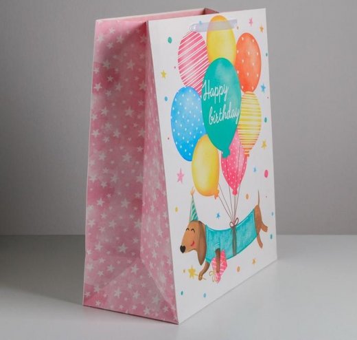 Купить Пакет подарочный Happy birthday Такса с шариками 49 × 40 × 19 см в Новосибирске Вы можете в магазине развивающих и настольных игр "Игры Почемучек".
