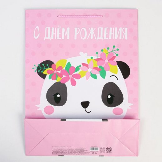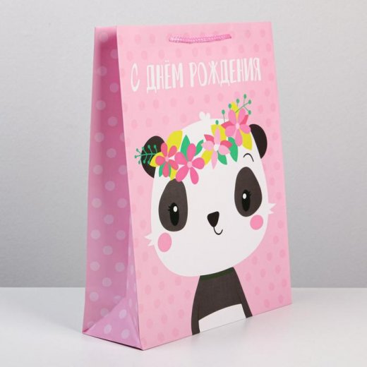 Купить Пакет подарочный С Днём Рождения Панда с венком 31 х 40 х 11,5 см в Новосибирске Вы можете в магазине развивающих и настольных игр "Игры Почемучек".