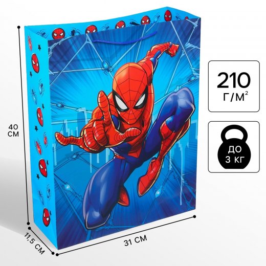 Купить Пакет подарочный Человек-паук 31х40х11.5 см в Новосибирске Вы можете в магазине развивающих и настольных игр "Игры Почемучек".