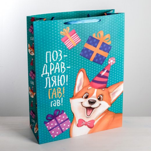 Купить Пакет подарочный Поздравляю!Гав! 61 х 46 х 20 см в Новосибирске Вы можете в магазине настольных и развивающих игр "Игры Почемучек"