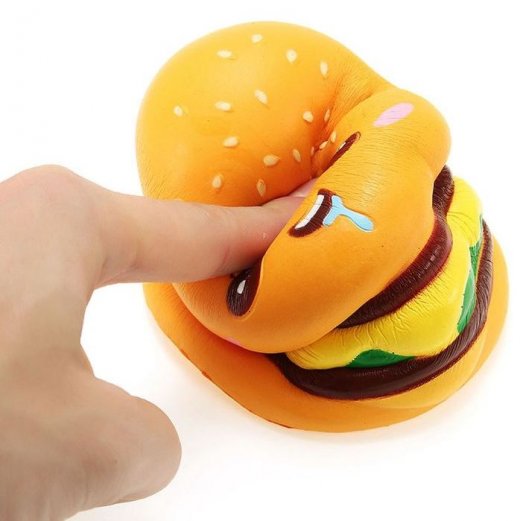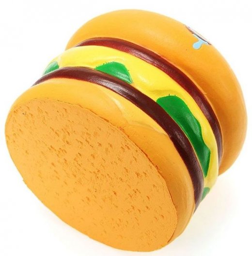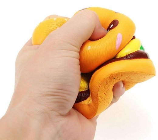 Сквиши это небольшие антистресс-игрушки в японском стиле. Их можно мять, но они всё равно вернут прежнюю форму. Кроме того, владельцы сквиши отмечают характерный запах оригинальных игрушек. Фишка как раз в ощущениях: говорят, крайне приятно мять, нюхать и наблюдать за тем, как расправляются сквиши. Все М-м-мняшки имеют невероятно милый внешний вид, поэтому очень нравятся детям. Сквиши источают приятный аромат, что делает их ещё удивительнее. Выполнена игрушка в виде забавного, улыбающегося бургера.