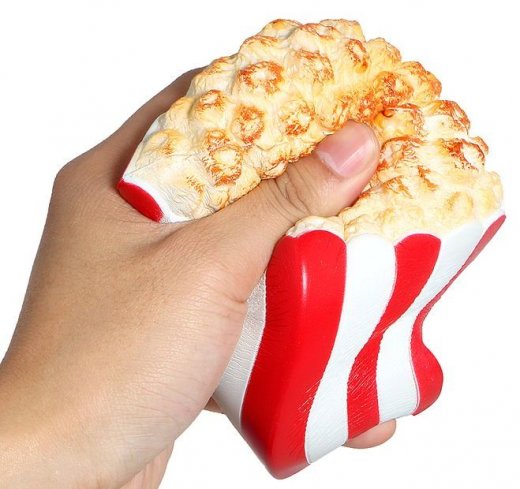 Сквиши это небольшие антистресс-игрушки в японском стиле. Их можно мять, но они всё равно вернут прежнюю форму. Кроме того, владельцы сквиши отмечают характерный запах оригинальных игрушек. Фишка как раз в ощущениях: говорят, крайне приятно мять, нюхать и наблюдать за тем, как расправляются сквиши. Все М-м-мняшки имеют невероятно милый внешний вид, поэтому очень нравятся детям. Сквиши источают приятный аромат, что делает их ещё удивительнее. Выполнена игрушка в виде забавного стаканчика с попкорном.