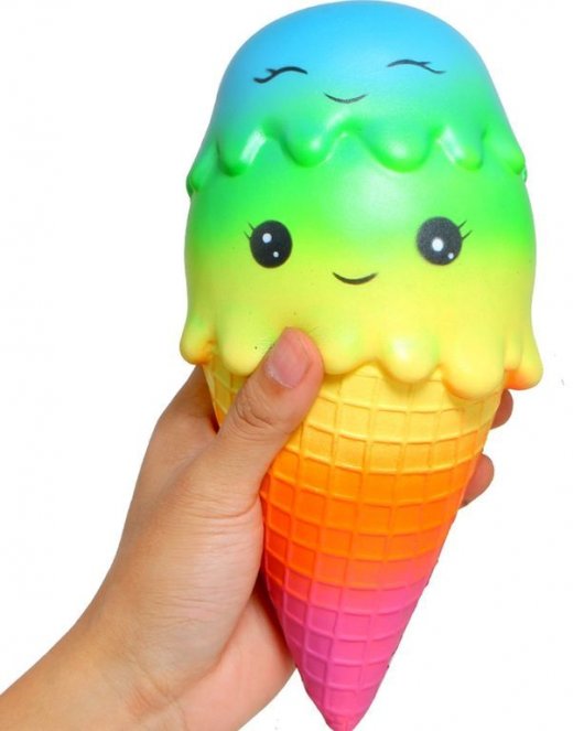 Сквиши Радужное мороженое - небольшие антистресс-игрушки в японском стиле. Их можно мять, но они всё равно вернут прежнюю форму. Кроме того, владельцы сквиши отмечают характерный запах оригинальных игрушек. Фишка как раз в ощущениях: говорят, крайне приятно мять, нюхать и наблюдать за тем, как расправляются сквиши. Все М-м-мняшки имеют невероятно милый внешний вид, поэтому очень нравятся детям. Сквиши источают приятный аромат, что делает их ещё удивительнее.