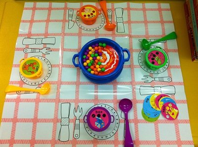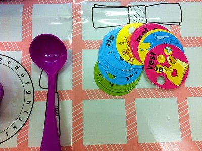 Карточки со словами размещаются в игровые тарелки.
