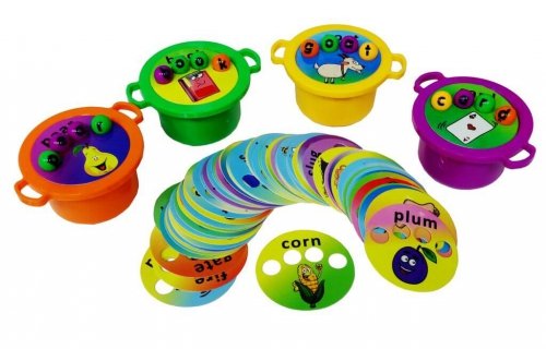 Карточки со словами размещаются в игровые тарелки.