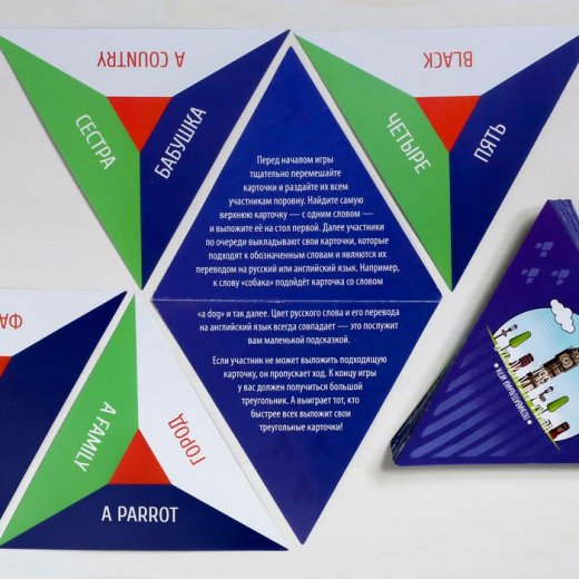 Если участник не может выложить подходящую карточку, он пропускает ход. К концу игры у вас должен получиться большой треугольник. А выиграет тот, кто быстрее всех выложит свои треугольные карточки!