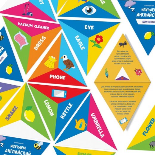 В этой игре вам предстоит соединять треугольные карточки так, чтобы совпали пары из изображений и их названий на английском языке. В итоге у вас получится один большой треугольник.