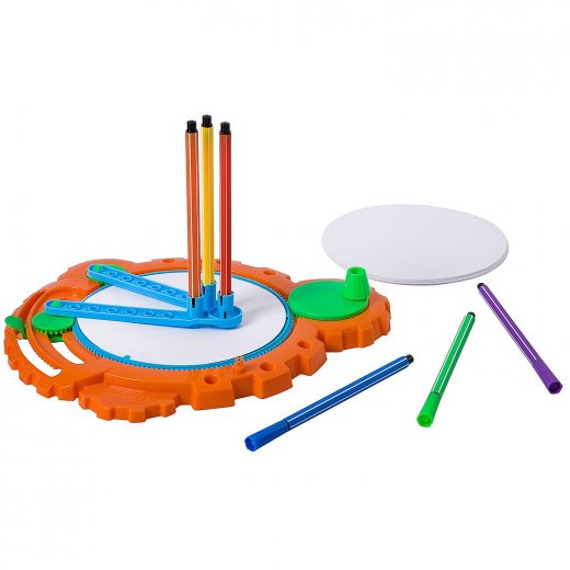 Чудесные узоры "Механический Спирограф" поможет ребёнку создавать удивительные спиральные рисунки просто закрепите бумажный диск на поле для рисования и установите до трёх фломастеров в специальные отверстия трафарета. Всё, cпирограф готов к работе. Теперь, вращая ручку, малыш получит удивительные узоры.