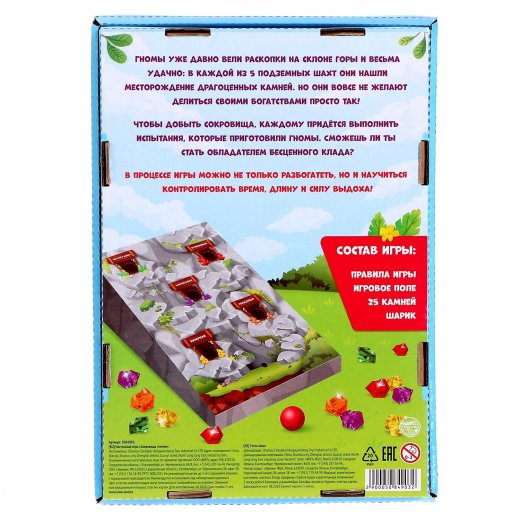 Настольная игра «Сокровища гномов» рекомендована детям старше 4 лет и рассчитана на 2–4 участников.