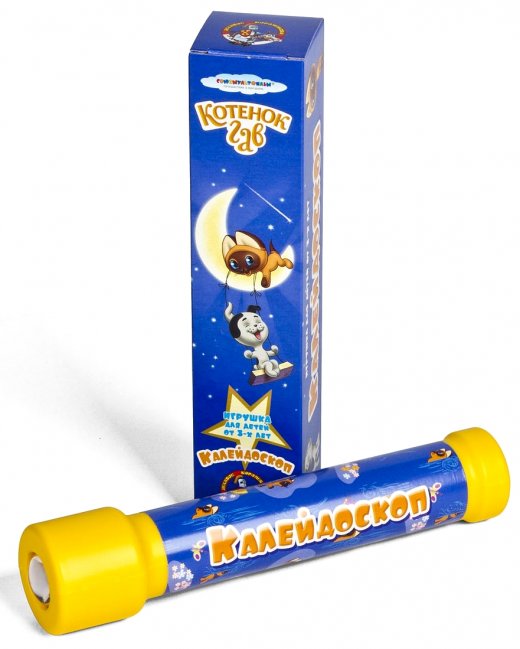 Калейдоскоп Котенок Гав – сделан в современном стиле, но сохранил его классическое удовольствие от этой игрушки. У калейдоскопа максимально удобная форма, поэтому его легко держать в руках. Наверняка, многие родители смогут вспомнить то, как они целые вечера проводили с этим волшебным устройством. В калейдоскопе можно увидеть любой силуэт, фигуру, узор, ведь разноцветные кусочки переливаются всевозможными красками. Игрушка оформлена в стиле мультфильма «Котенок Гав».