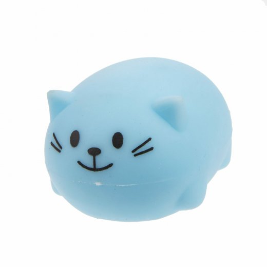 Игрушку выполнена в виде котика. Её можно сжимать, растягивать и мять.