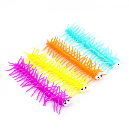 Гусениц можно тянуть, но они всё равно вернутся в прежнюю форму. Они сделаны из мягкой и приятной на ощупь резины, она безопасна для здоровья.