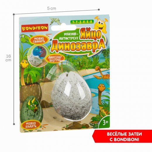 Динозавр внутри, просто нажми на яйцо. Игрушка-мялка развивает моторику рук, расслабляет и развлекает. Отличный способ поднять настроение и успокоить нервы, просто сожмите игрушку! Уход: при необходимости промойте под проточной водой щадящими моющими средствами.