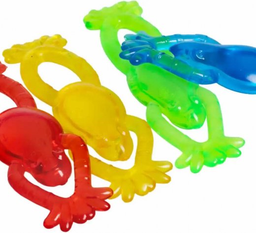 Лягушки-рогатки готовы к полету! Зацепите рогатку на кончик своего указательного пальца, указывая пальцем туда, куда вы хотите ее отправить. Натяните другой рукой, резко отпустите. Уход: при загрязнении промойте игрушку мыльной водой.